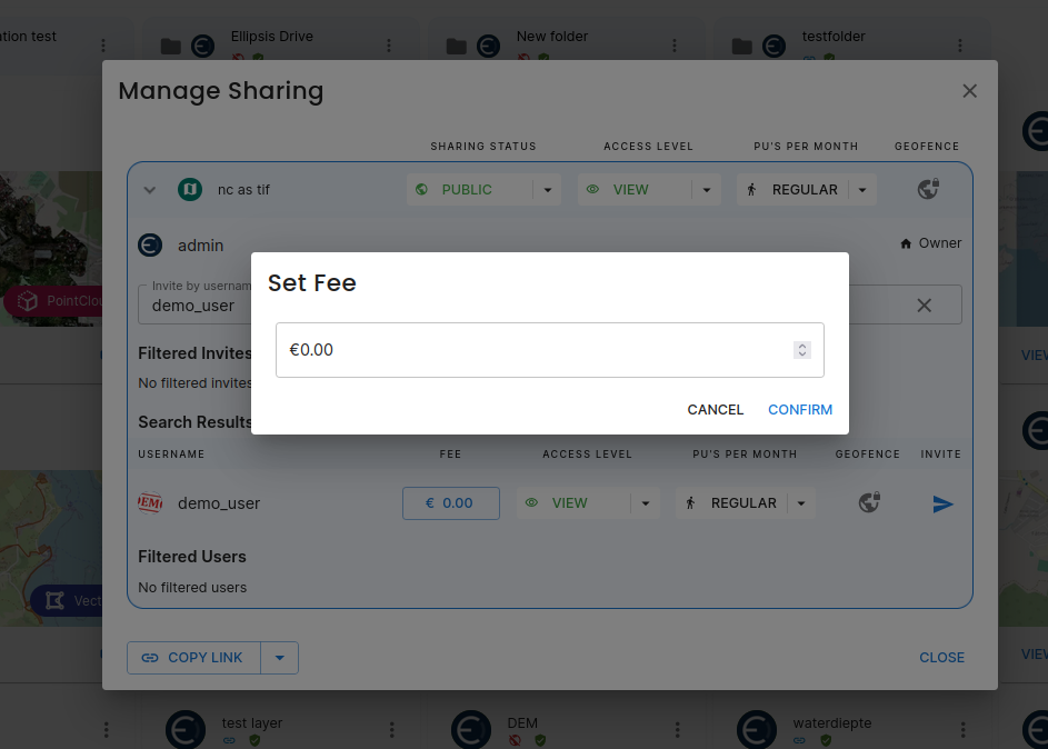 NOTE: By joining a layer or folder with a paywall, new users accept that Ellipsis Drive subtracts the fee from their account and transfers it to the account of the owner.